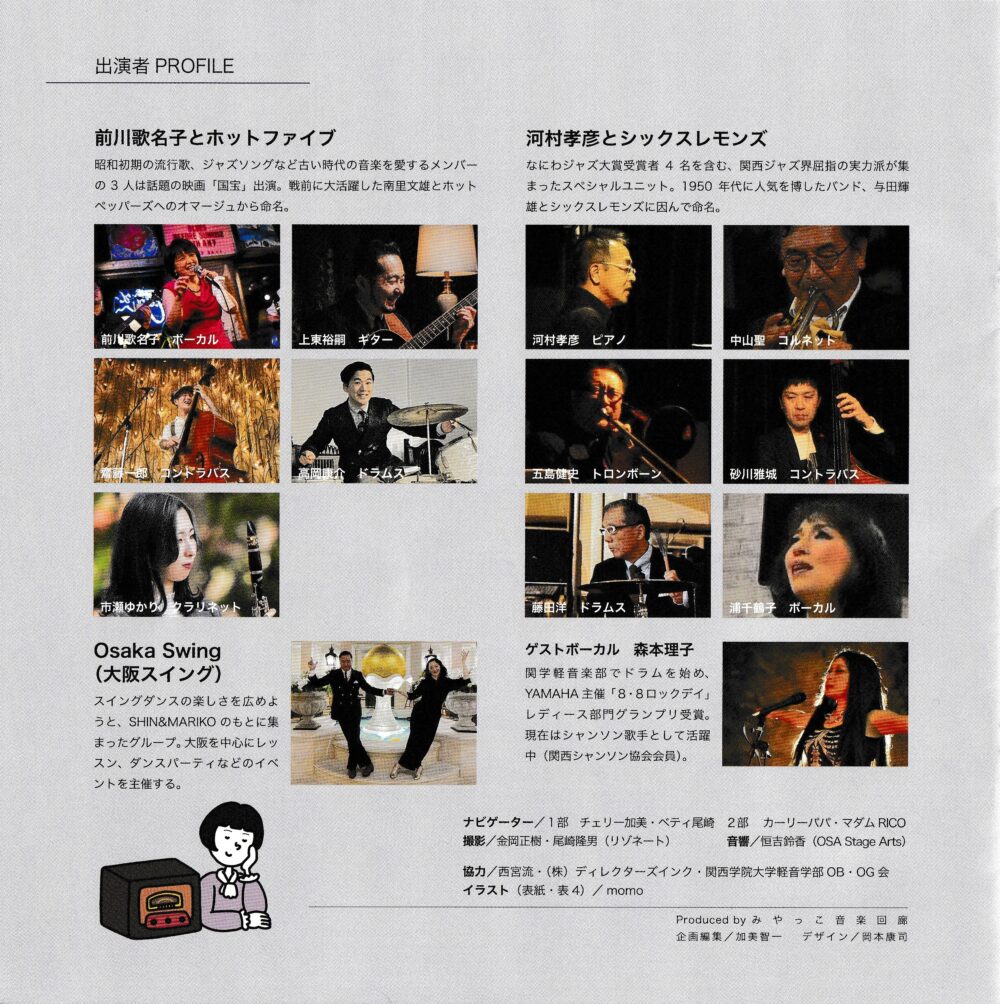 2部のMCは、RICO’s Barのママとみやっこ音楽回廊の神足さん。それぞれ雪村いづみとトニー谷に扮してネタを仕込んでしっかり笑いを取っておられました☺️11月、みなさんと打ち合わせしたのも良い思い出です。