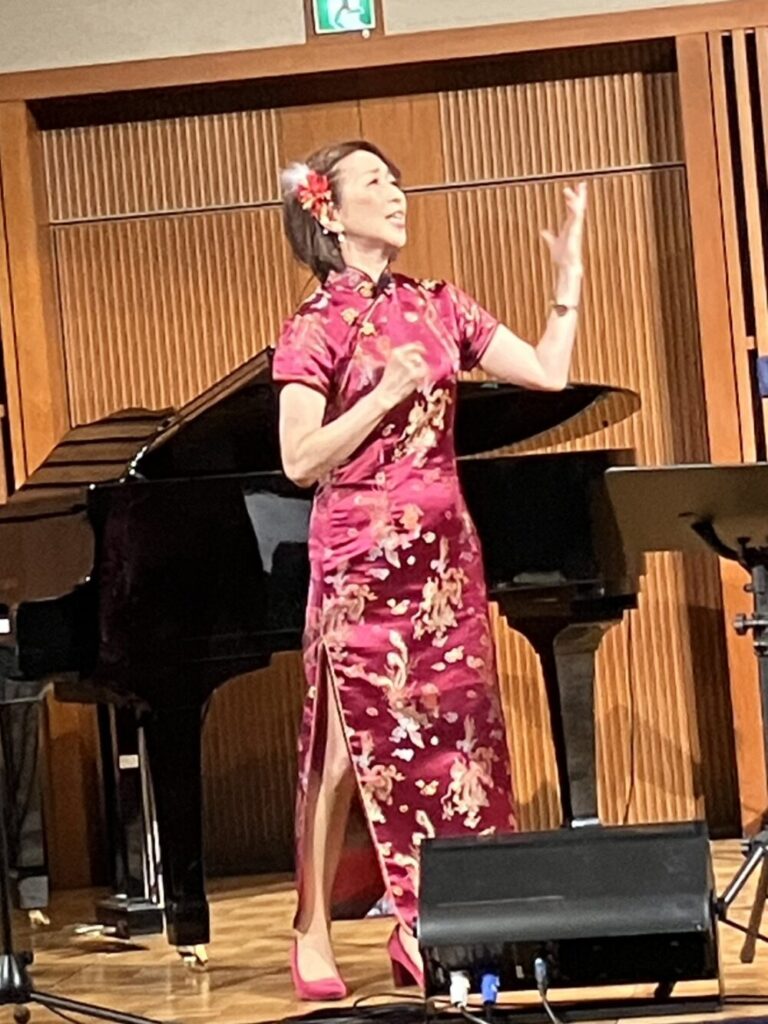 以前「上海バンスキングを歌う」という企画ライブをやった際着ていたチャイナドレスでMCの手伝いをやってもらえないか…と。加美さんがMCをされる横で相槌を打つぐらいならできるだろうとお受けしたのですが、話は一変し、「会場が上海のダンスホールという設定でお客さんを妄想の世界へ誘うナビゲーターをやってほしい」となり、ナビゲーター?一体何をするのですか?もしかしてひとり語りみたいな?私、やったことありませんけど😅
