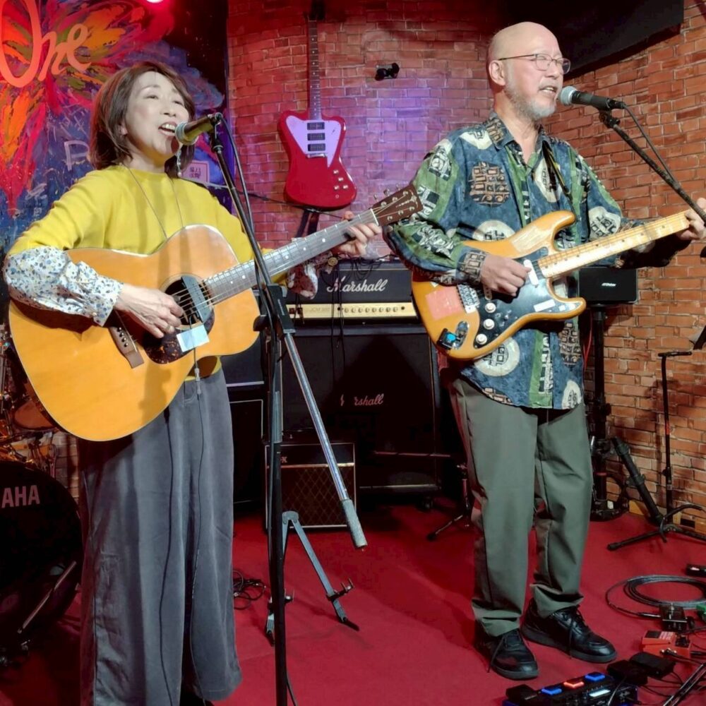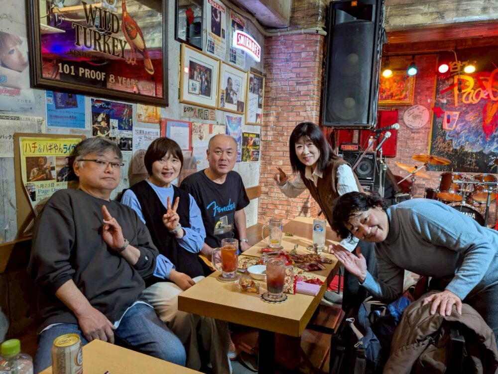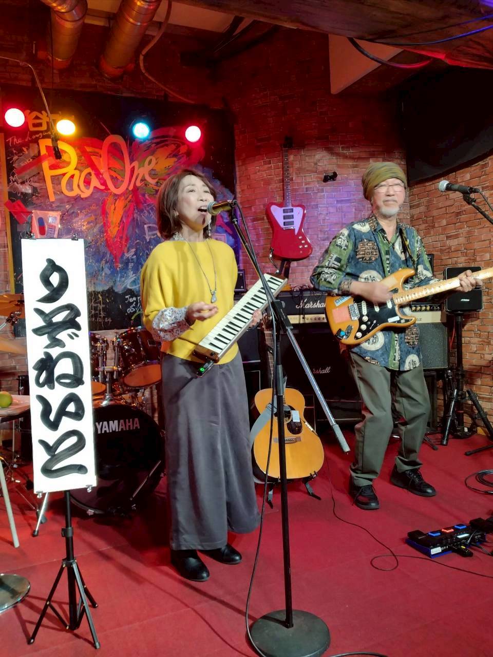 学生時代の「フォーク研究会」の大先輩と共に、対バンライブをやらせて頂きました。懐かしい顔ぶれが揃い「プチ同窓会」の盛り上がりでした![]()