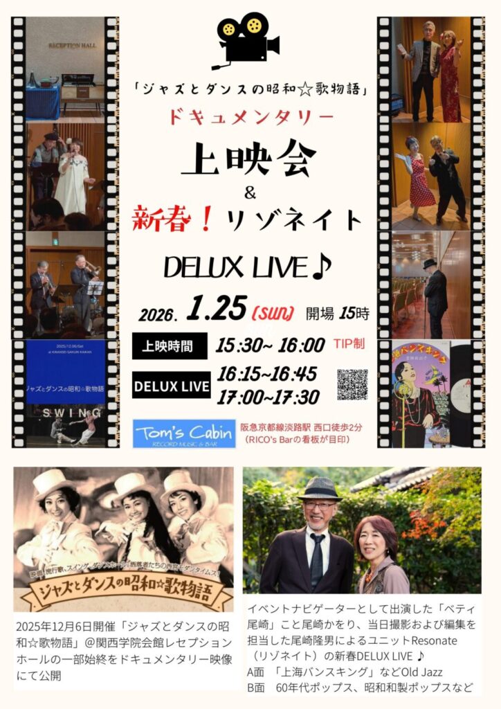 「ジャズとダンスの昭和☆歌物語」ドキュメンタリー上映会 & 新春!リゾネイト DELUX LIVE@Tom’sCabin